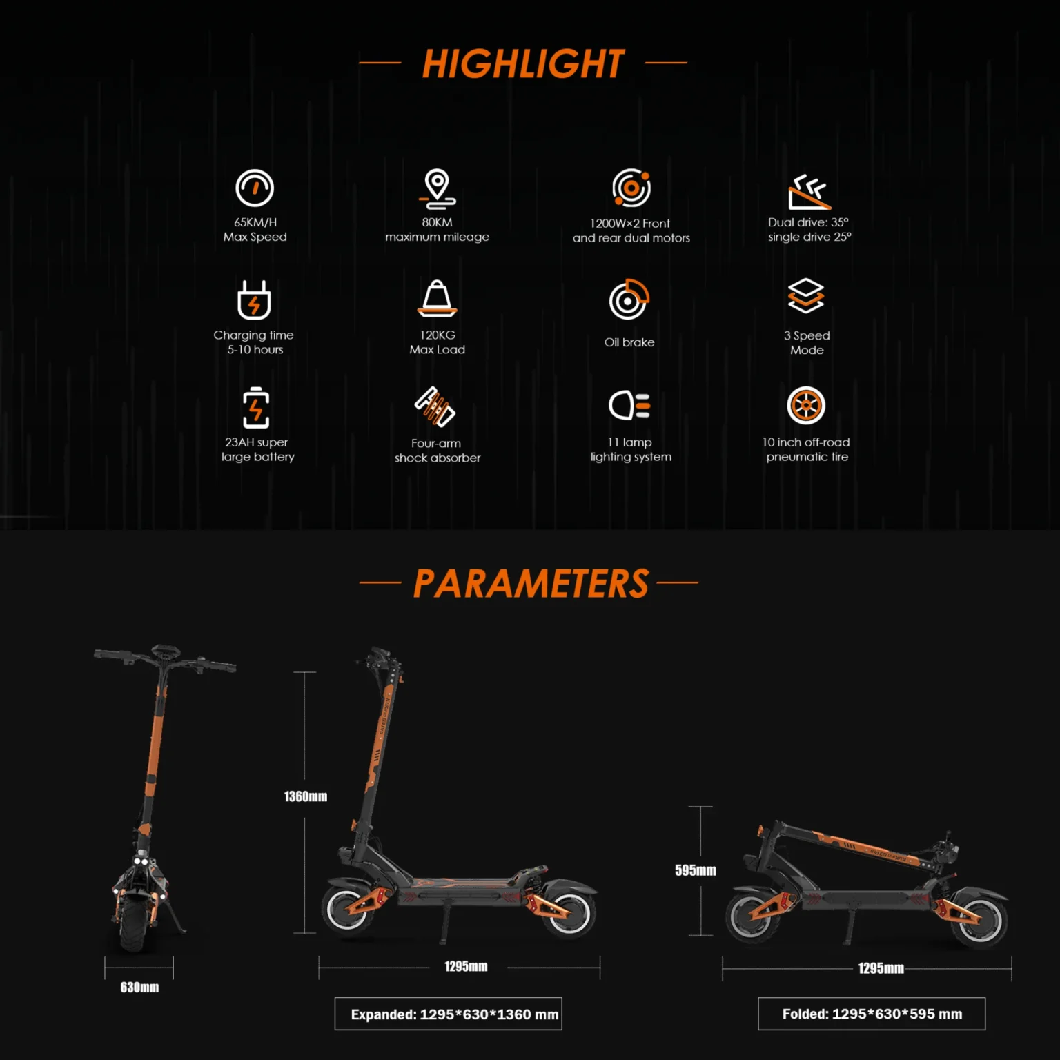 Kukirin G3 is equipped with a 1200W high-performance motor, which provides strong power support and an excellent acceleration experience, with a maximum speed of 50km/h. Whether climbing a slope or driving at high speed, it allows you to easily cope with various road conditions.